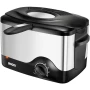 Kontrolna lampica funkcije signalizira da kompaktni uređaj radi. Zahvaljujući mješavini crnih plastičnih elemenata i mat brušenog nehrđajućeg čelika, kompaktna friteza predstavlja i vizualni užitak. Postoje četiri razine temperature koje možete birati - 130, 150, 170 ili 190 °C, koje se lako mogu podesiti pomoću rotacijske kontrole.