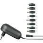 Kompaktni utikač za napajanje sa stabilnim, podesivim izlaznim naponom. Univerzalno primjenjiv za mnoge uređaje kao zamjenski ili drugi adapter napajanja. Izmjenjivi izlazni utikači zaštićeni su od izmjene polova. Idealno za mala trošila poput prijenosnog računara, usmjerivača za WLAN, CD player a, mini televizora, itd.