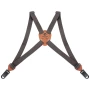 VEO Optic Guard H je jednostavno rješenje za pojas, dostupno u crnoj (BK) ili smeđoj (BR). Elastične trake prolaze preko svakog ramena i povezane su sa silikonskom podlogom (na crnim naramenicama) ili reljefnom podlogom od prave kože (na smeđim naramenicama), čime se težina raspoređuje na veće udaljenosti preko ramena i leđa. Trake se mogu zategnuti radi vaše udobnosti, a visina vašeg dalekozora (ili drugog uređaja) može se lako podesiti. Svaki je remen dostupan u crnoj (umjetna koža) ili smeđoj (prava koža), s poboljšanim šavovima za maksimalnu sigurnost. Svaki remen dolazi s četiri RCA kopče.